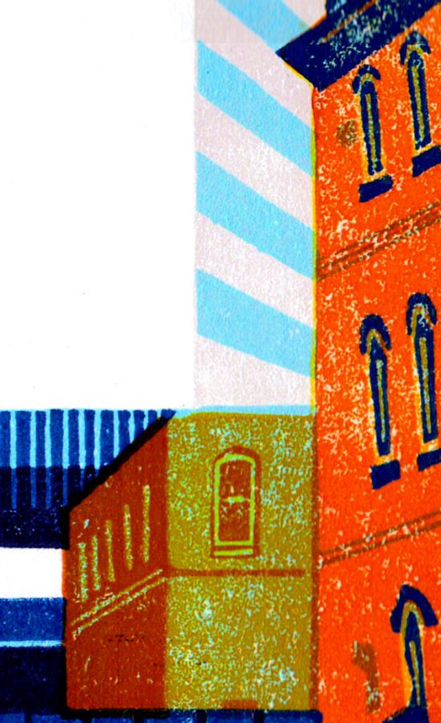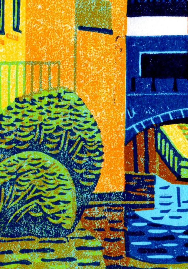 Up the Farmers Bridge Flight on the Coventry & Fazeley canal in Birmingham, I have made a monotone version of the same motif but this works better in brighter, bold - completely unreal - colours. Only a couple of the edition left, but there a few proofs as well.