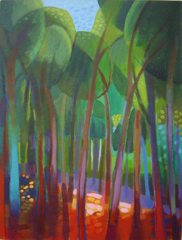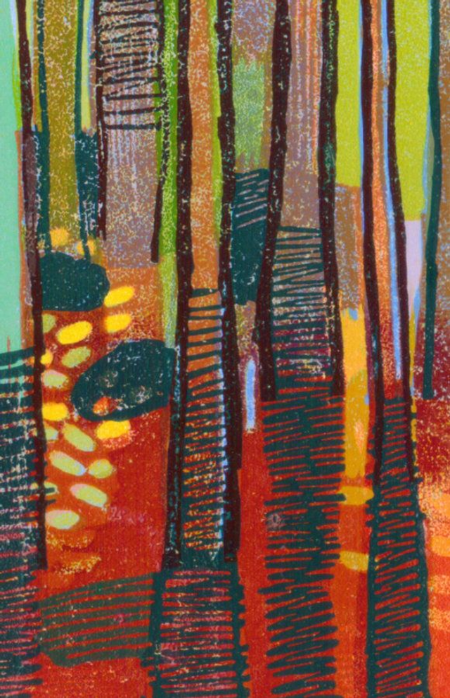 This linocut was taken from a painting made many years earlier (see image). I tried to reproduce the painting quickly learning that oil paint and printing ink are very different beasts. So much so that, although they look "similar" they are in fact very different. Indeed each of the edition have variations..