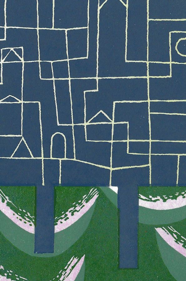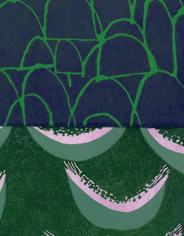 Although based on memories and drawings of Cornwall this print, to me, had the look of Japan. A return to simplicity and a more abstract design, this is a part of my series of "remembered landscapes".