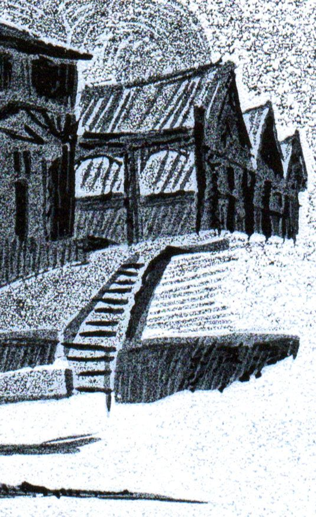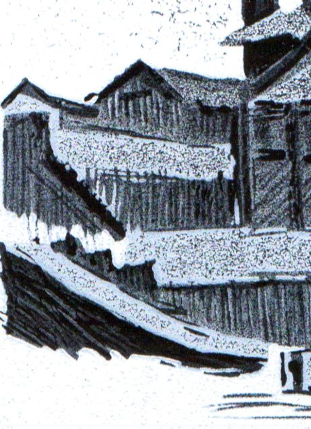 As with most of my work this was taken directly from a drawing (see thumbnails). It is an unusual reduction linocut as it is printed dark to light. The first colour was the darkest grey, almost black. Every subsequent colour was the same transparent white. As each transparent white was printed the first layer of dark grey became paler and paler. In the end, to me it had the appearance of an etching, rather than a linocut. As such this is a varied edition.