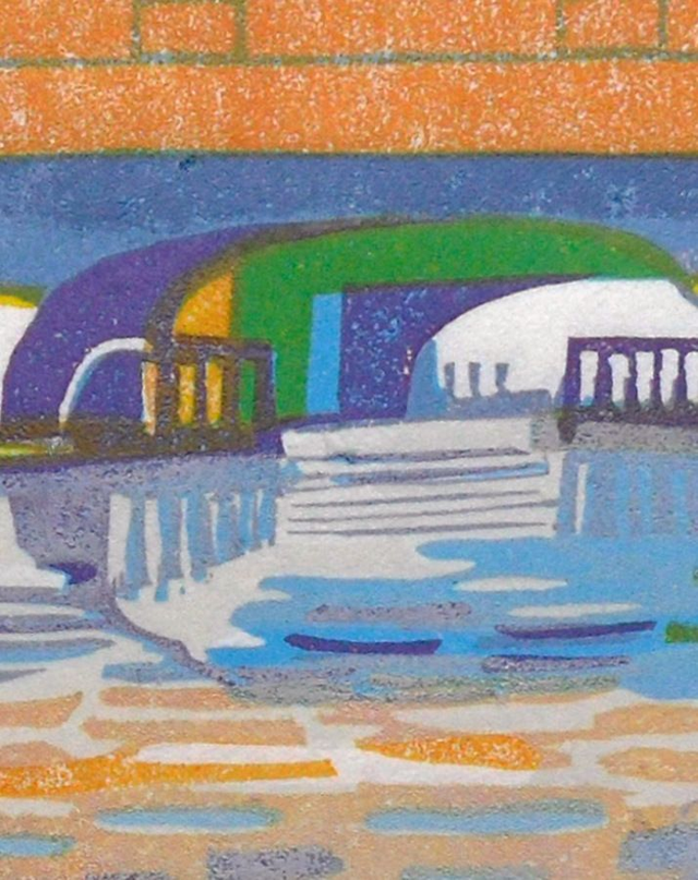 A rather unusual view of the Gas Street Basin, no people, no boats. This print was commissioned by the Poetry Society for use in their promotion.