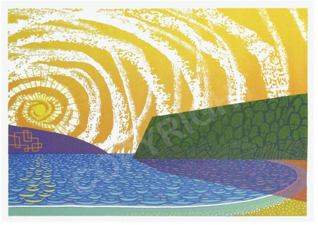 A reminiscence of Readymoney Cove in Fowey, Cornwall. A complete fabrication of both colour and shape. In a way it could be any coastal scene, in my eyes it is Cornwall.