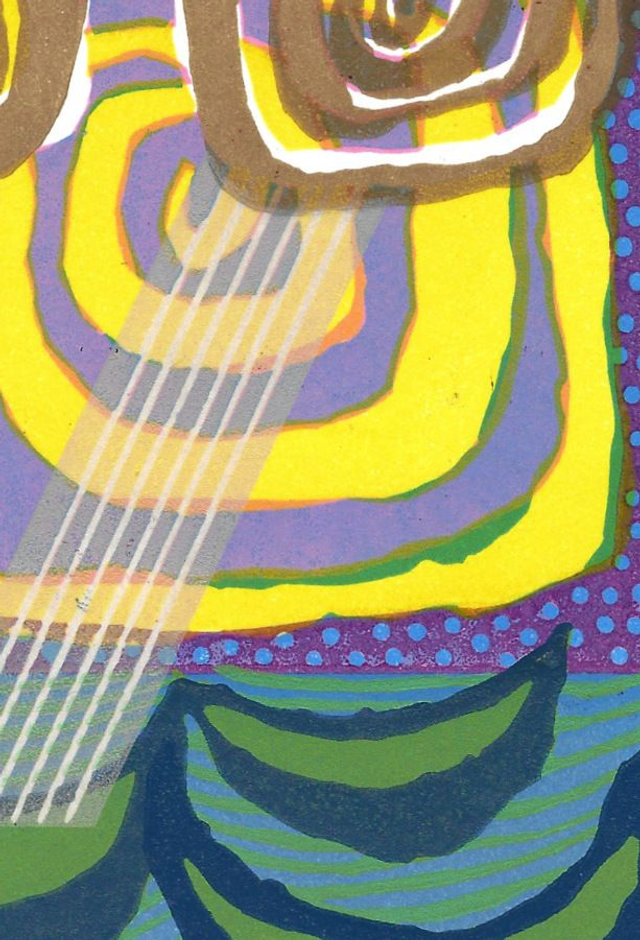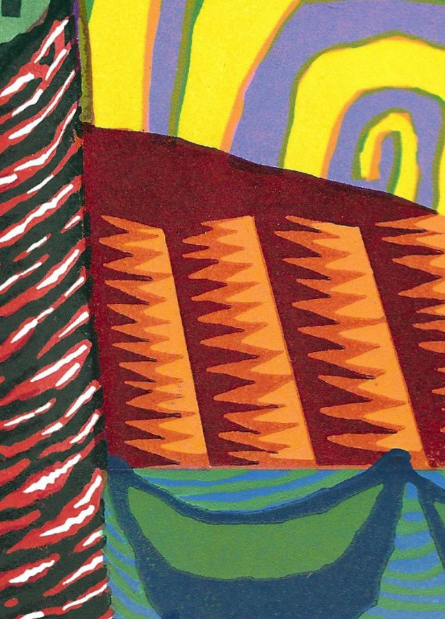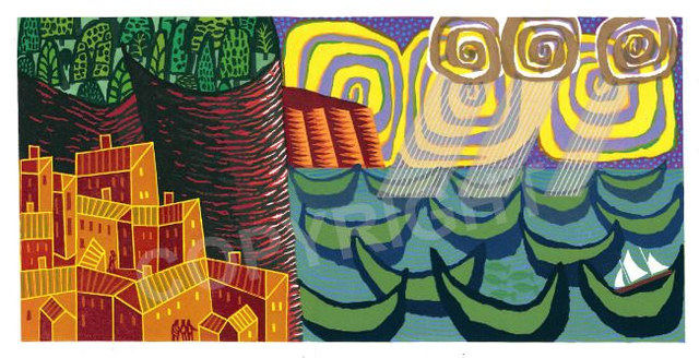 I like abstract work, but I also like narrative work. I try to find a piece of text to fit a finished piece, rather than the other way around. In this case they chase tuna, not a whale.