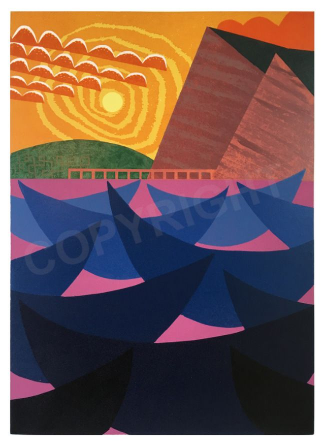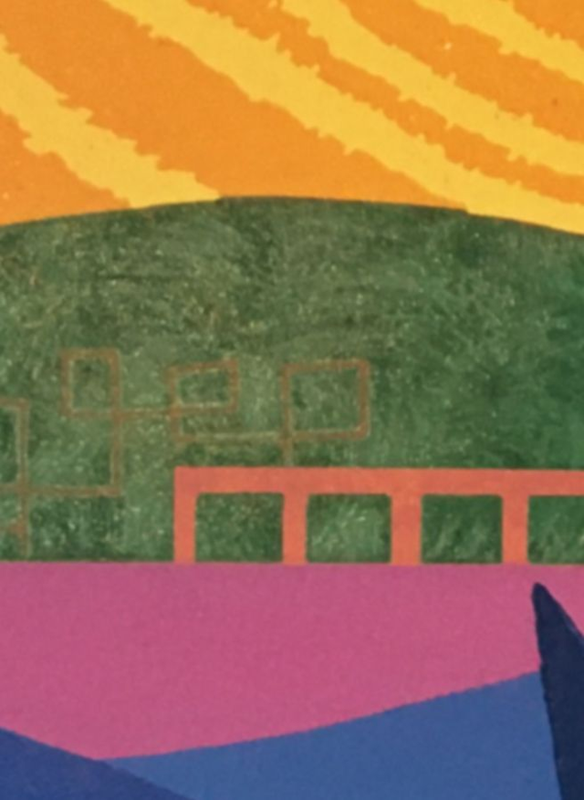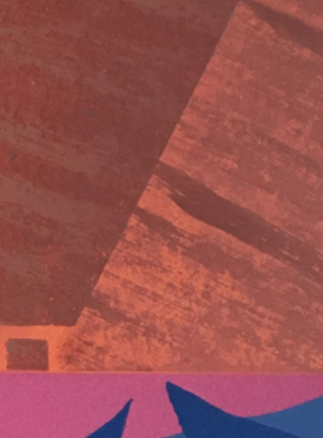 A look at texture, colour and pattern, pushing on from earlier linocuts. I am forever trying to get back to simple, more abstract imagery but always get pulled back to figurative elements.
