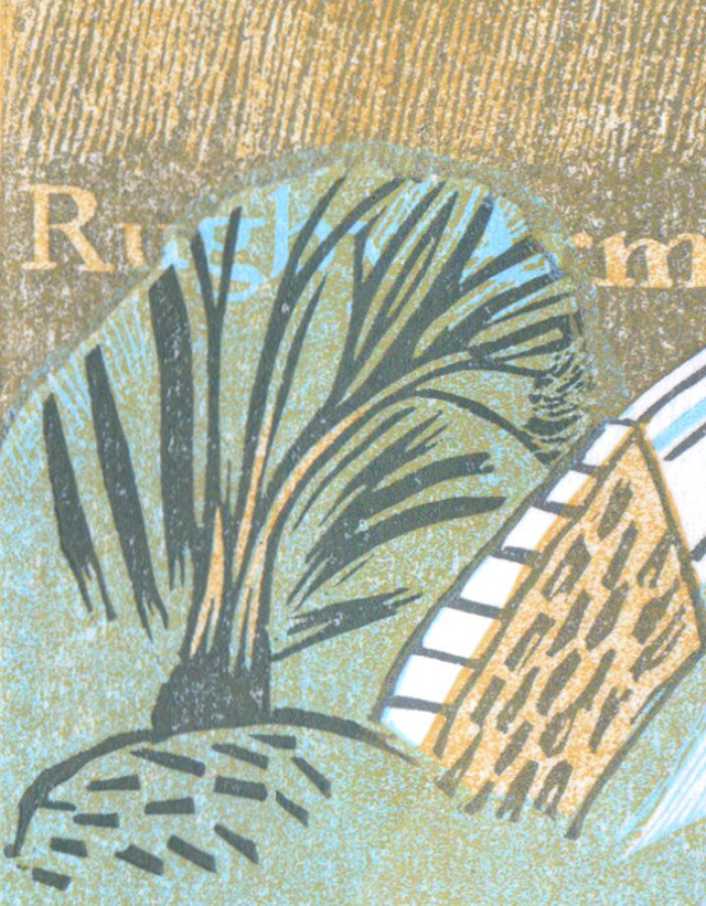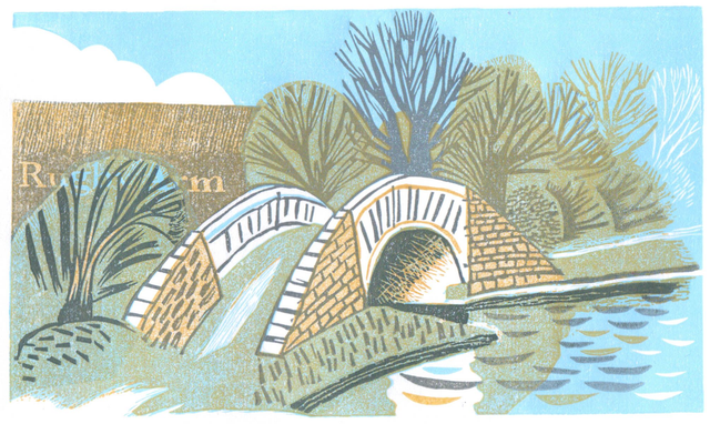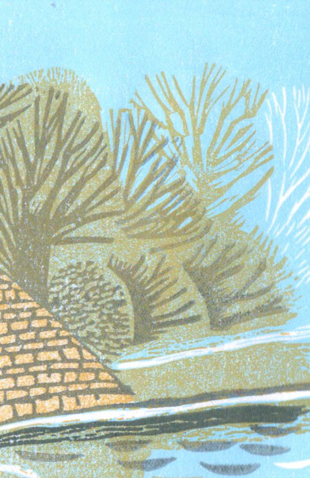 This linocut was made after drawing the bridge many, many times. One particular drawing was its main source.